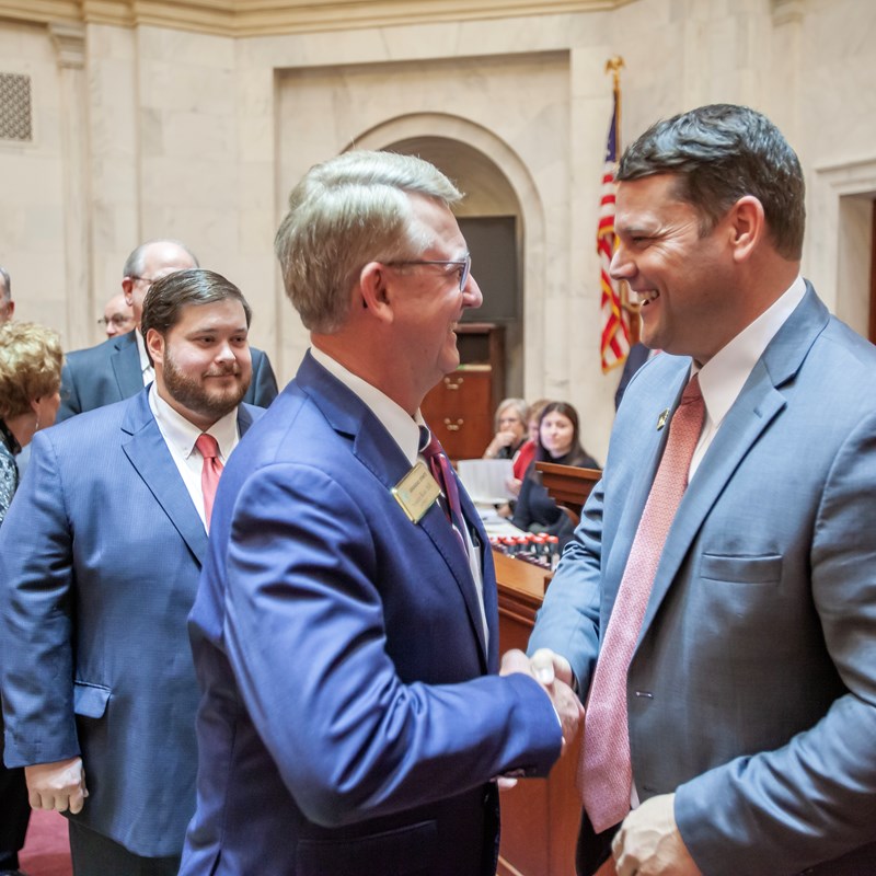 During the 2021 regular session Senator Hill sponsored legislation to establish a day of prayer for Arkansas students, allow cities and counties to issue bonds for expansion of broadband and he sponsored Act 135 of 2021 to help military members and their families more easily transfer occupational licenses from other states to Arkansas.